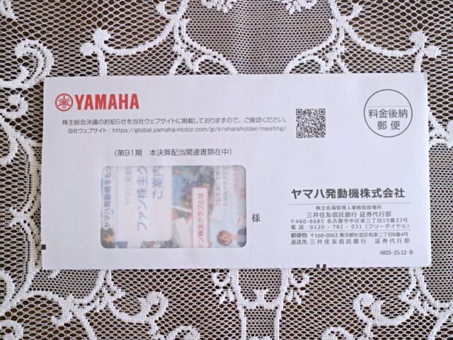 3月に、ヤマハ発動機(YAMAHA)から2025年12月末基準分の期末配当金を頂きました。今回初めて株主になったばかりなので、これが初めての配当金です。■1株当たり期末配当金 10円(100株保有の場合⇒1,000円)■配当金支払日 202...