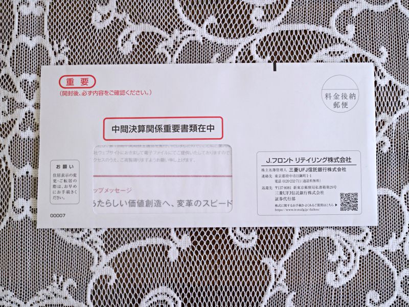 今回受け取った中間配当金を記録しておきます。