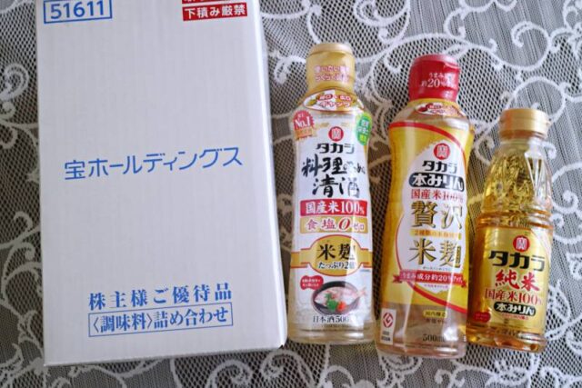 株主優待&配当金 宝HDから届いた株主優待品<調味料>詰め合わせ(2025年3月分) 7月に、宝ホールディングス(2531)から2025年3月期末分の株主優待品が届きました。宝の株主優待は、2種類(お酒or調味料)の詰め合わせから1つを選択できます。今年も調味料セットを選んでみました。届いた調味料(本みりん&料理酒)セットの... 2025.10.13 株主優待&配当金