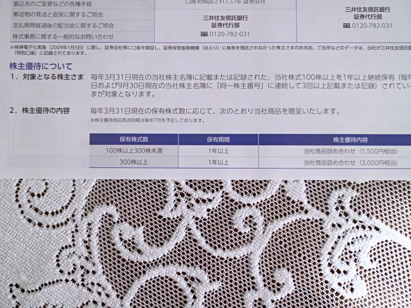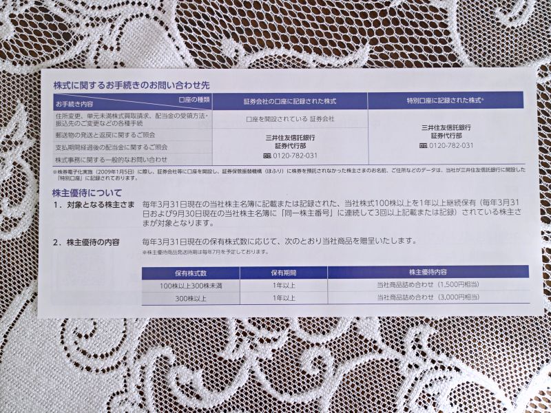 株主優待の基準については今回同封されていた案内文にも記載ありました。