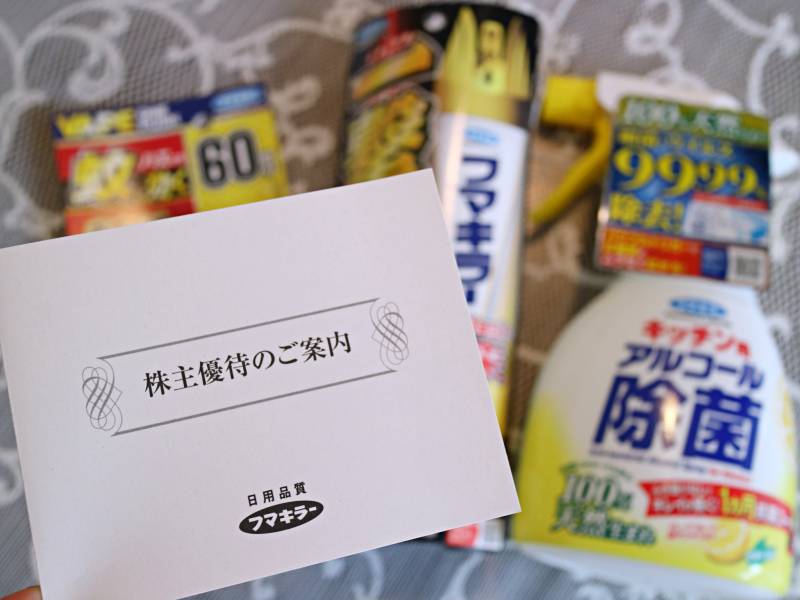 フマキラーは配当少ないものの、株主優待品が気にっているため継続保有しています。
