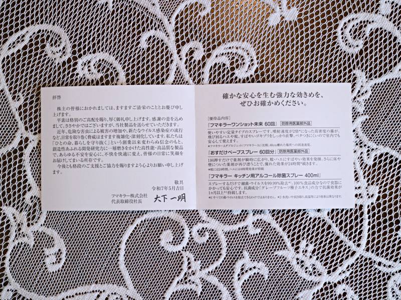 6月に、フマキラー(4998)から2025年3月末基準の株主優待品が届きました。