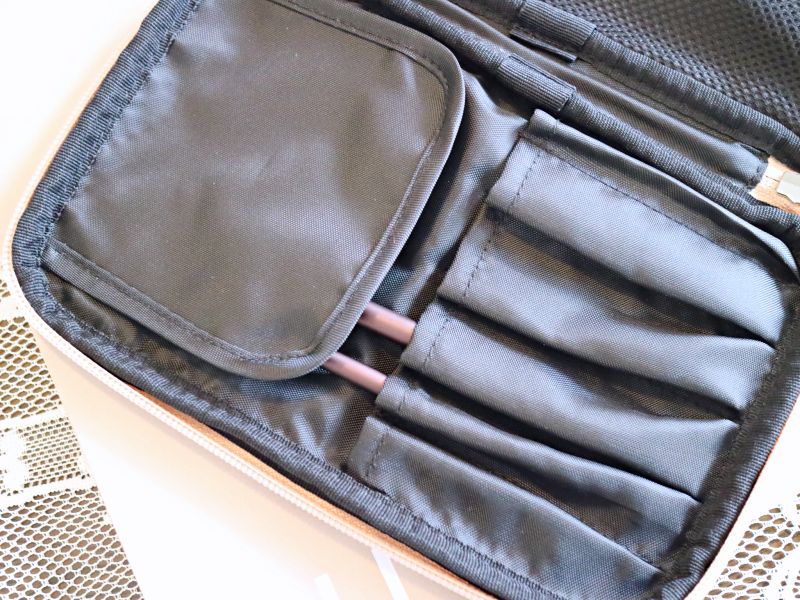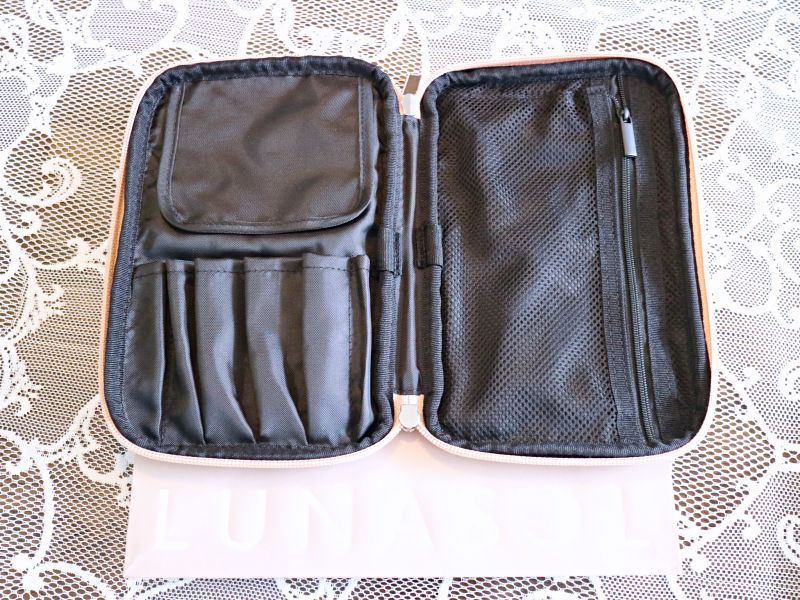 開くと、左側にブラシ入れ。右側がメッシュポーチ(ファスナー付き)