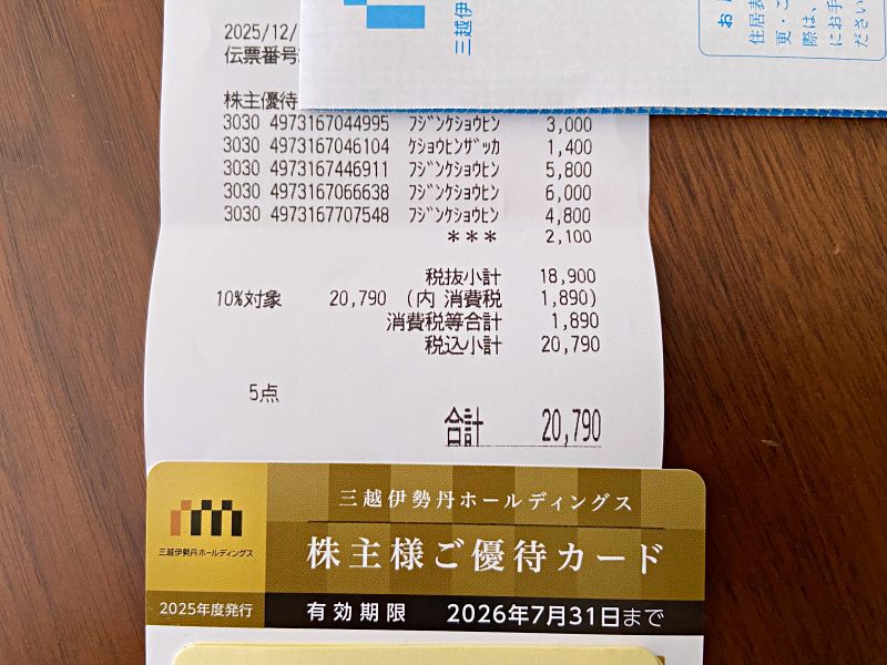 今回も三越伊勢丹HDの株主優待カードを使って10%割引で購入しました。