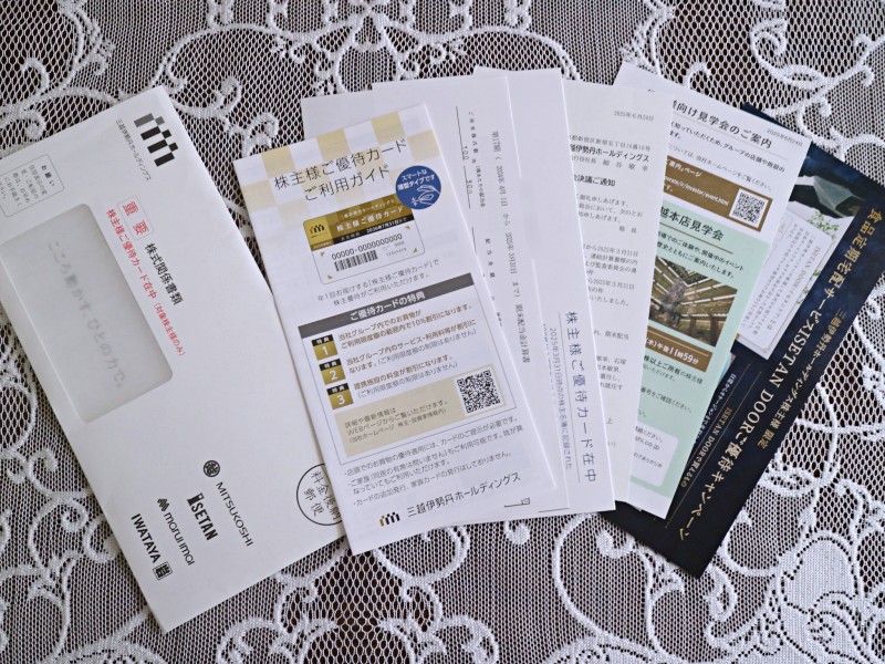 三越伊勢丹HDの株主優待カードは配当金計算書と同じ封筒で6/27に届きました。