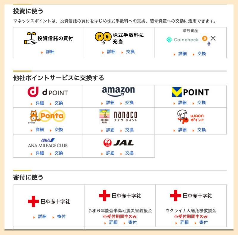 それから、マネックスポイントは投資に使えるだけなく他社ポイントに交換も可能です。