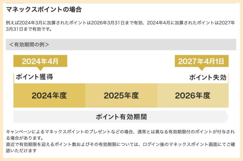 マネックスポイントの有効期限は「獲得日の翌々年度末(3月31日)まで」