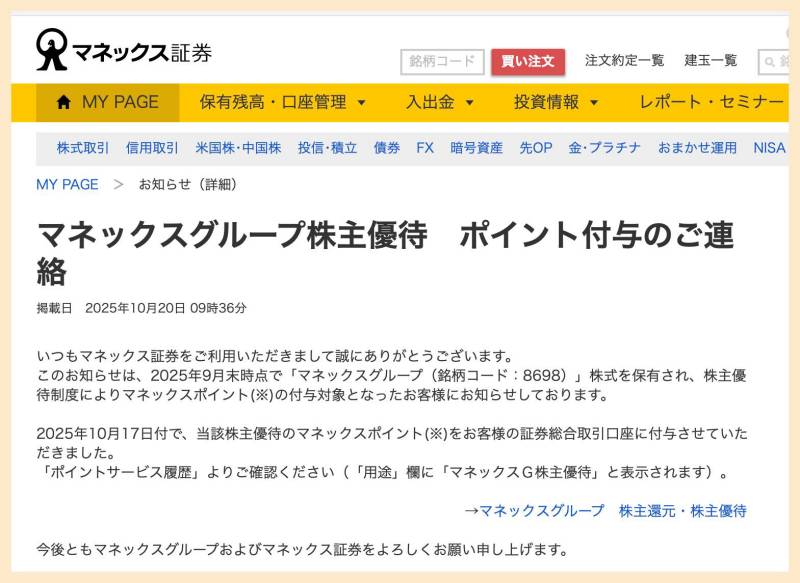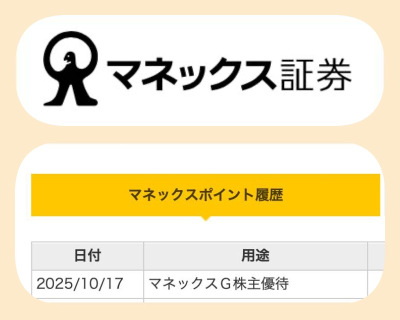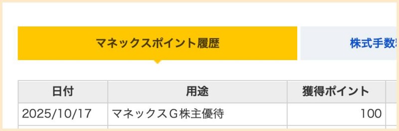 ▪️株主優待マネックスポイント付与日 2025年10月17日