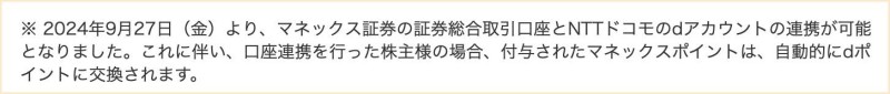 ただし、一度口座連携を行なった株主の場合はそれ以降は付与されるポイントが自動的にdポイントに交換される旨の記載があります。