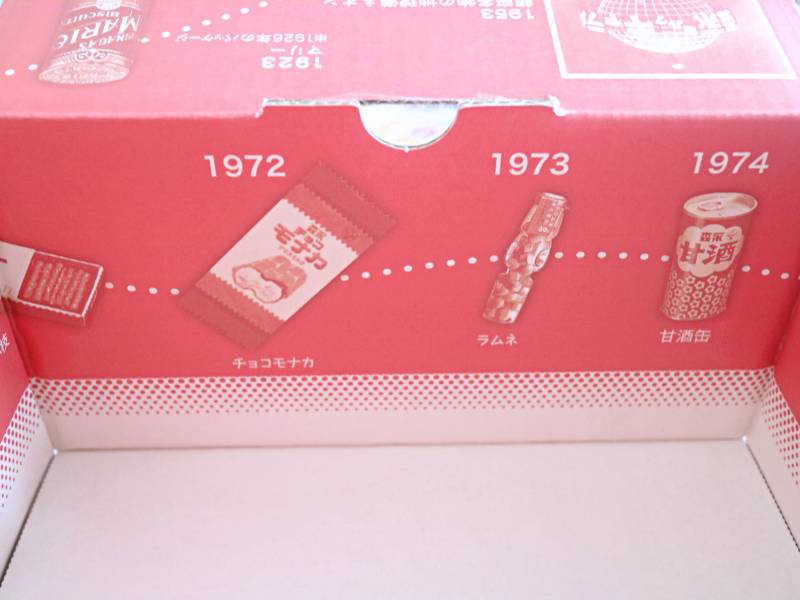 お菓子を全部出すと、懐かしい森永製菓のパッケージが年代ごとに描かれています。