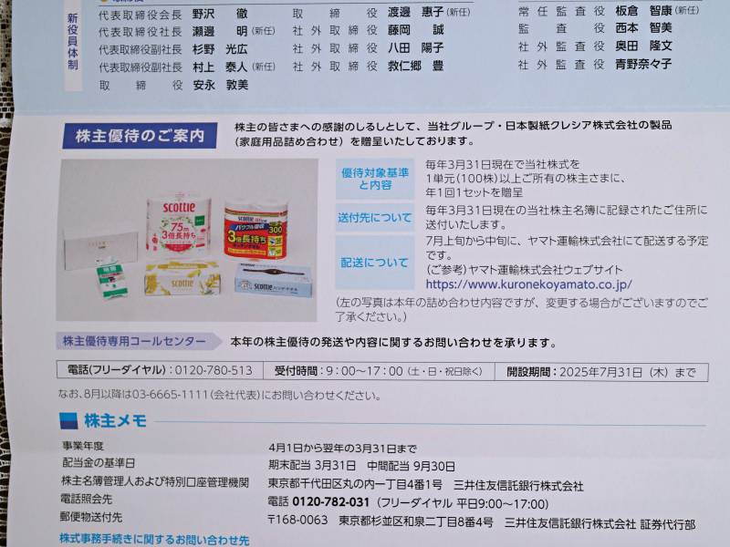 今後も紙製品は市販価格の値下げは見込めそうにないから、株主優待を有効に使っていきたいです。