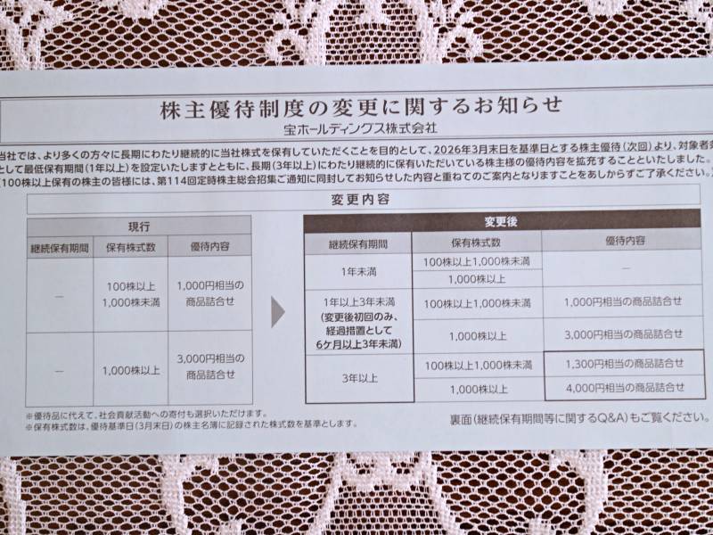 もともと配当性向は低い銘柄のため、完全に株主優待目的での保有しています。