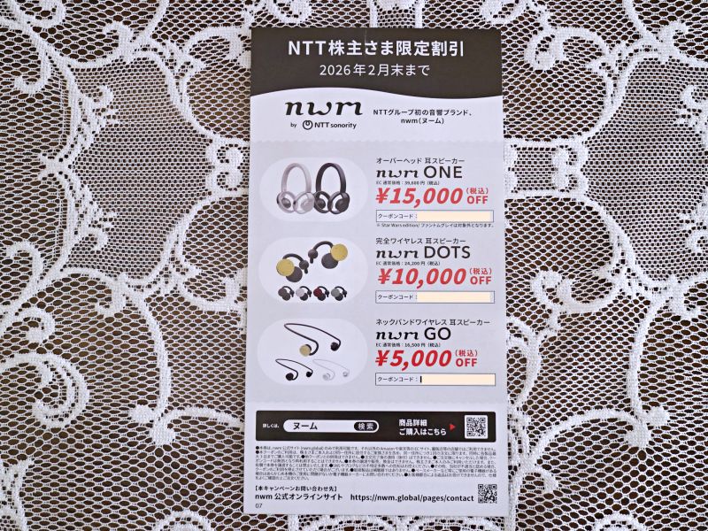 2つめの株主限定キャンペーン、耳スピなどブランド「nwm(ヌーム) 」割引クーポン券。