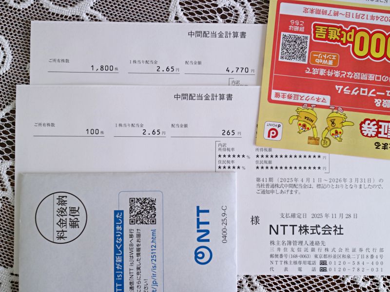 NTT から中間配当金&株主限定キャンペーン(2025年9月分)