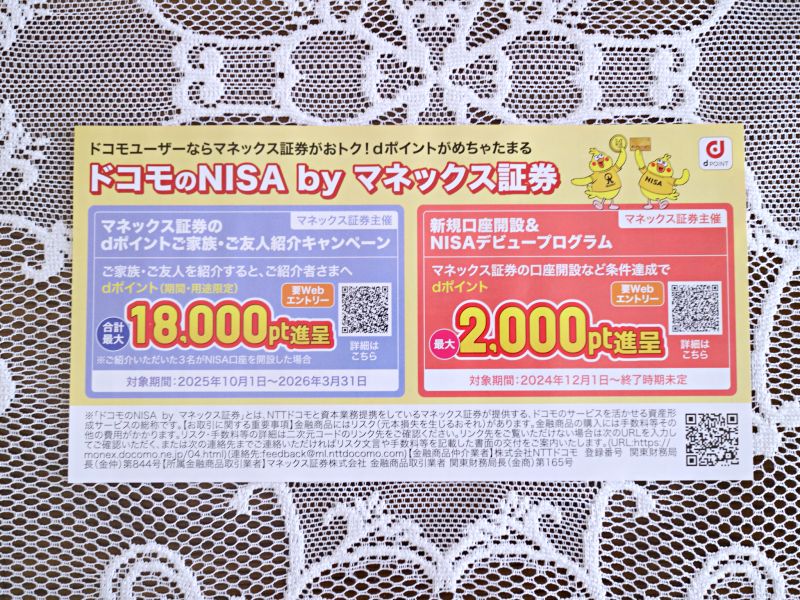 1つめは、ドコモ料金プランとNISAマネックス証券のキャンペーン。
