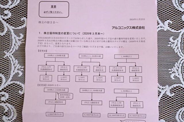 6月に、宝ホールディングス(2531)から2025年3月末基準の配当金を頂きました。株主優待制度の変更のお知らせも同封されていました。期末配当金と株主優待制度の変更(経過措置あり)についてご紹介します。2025年3月末基準 期末配当金宝ホー...